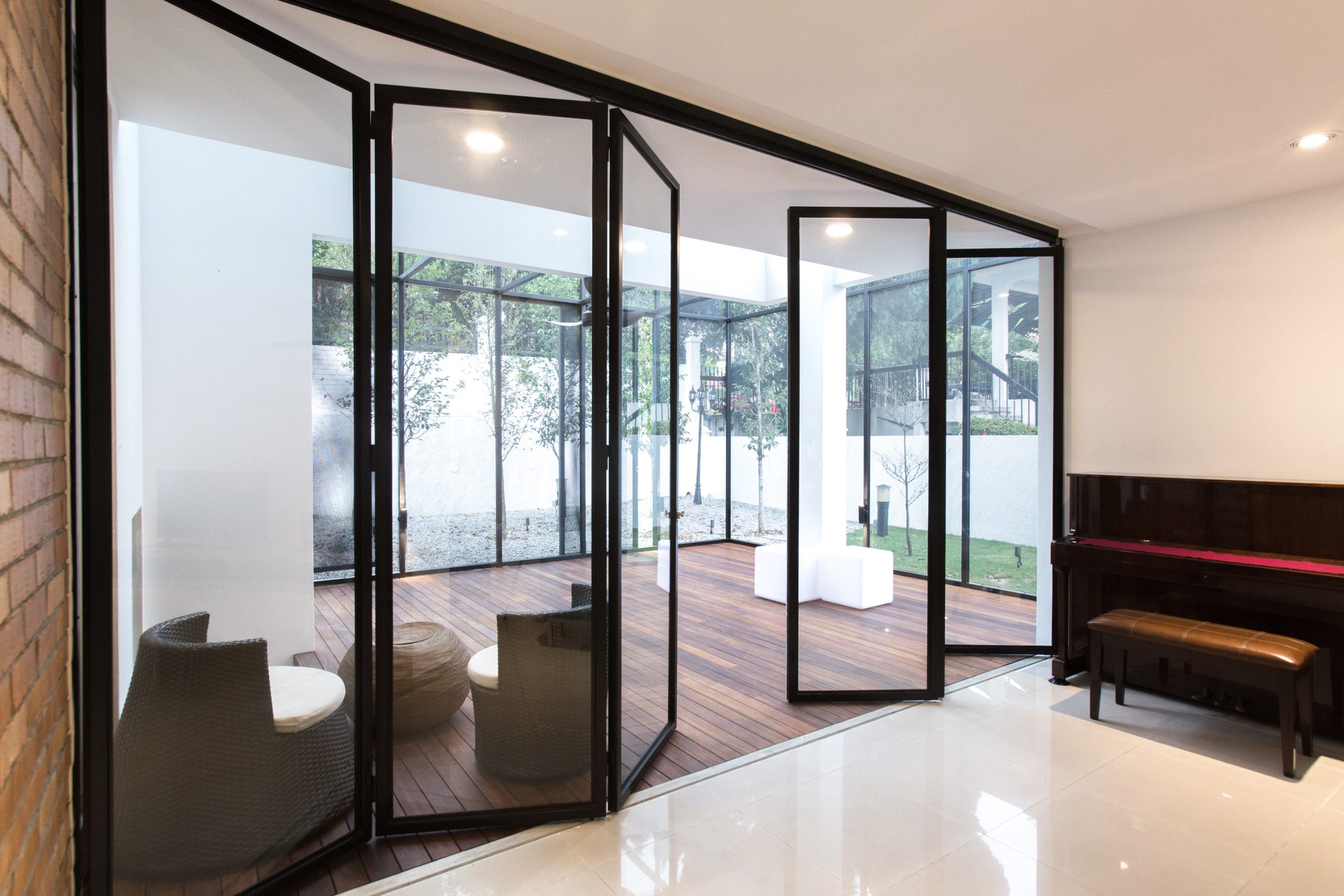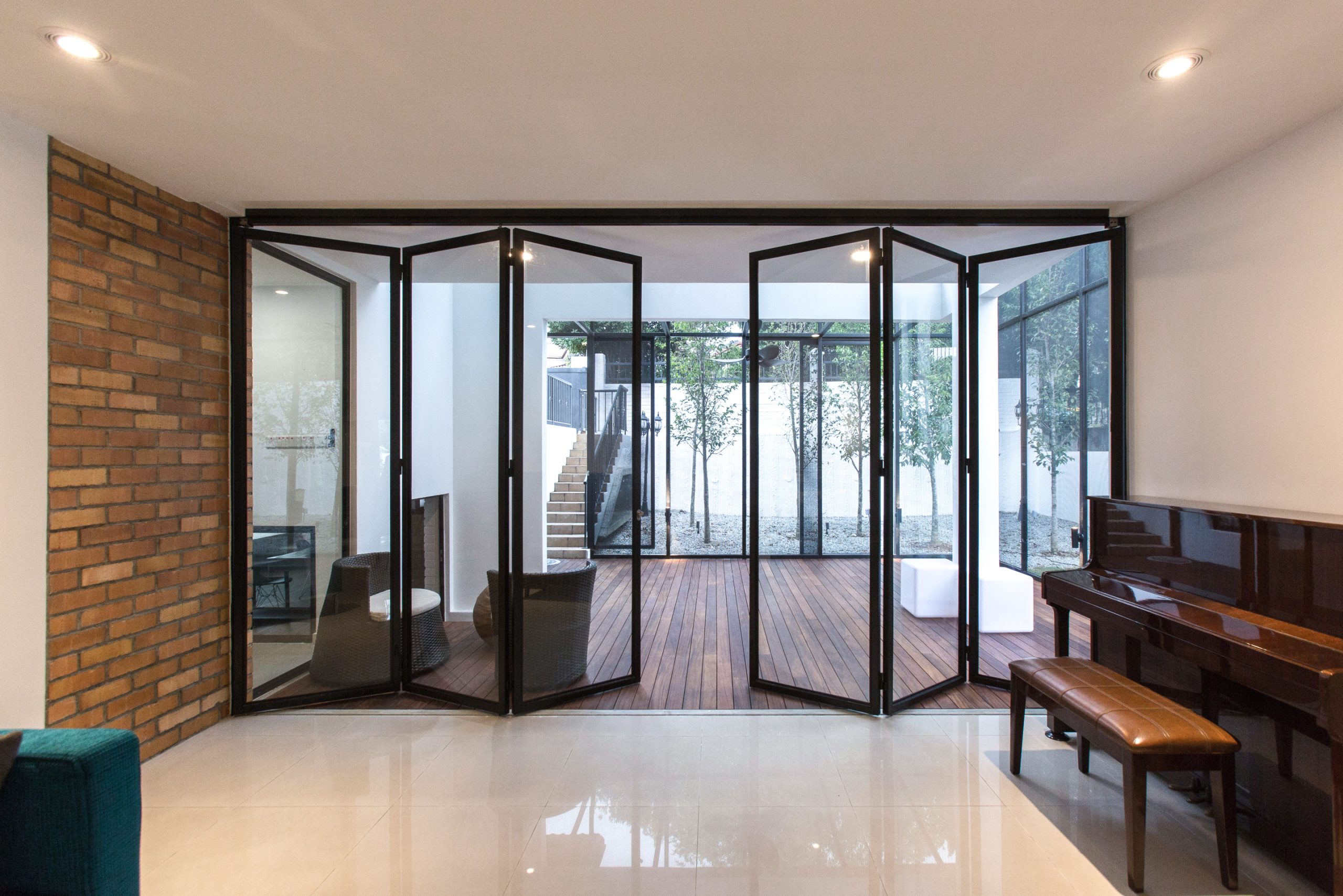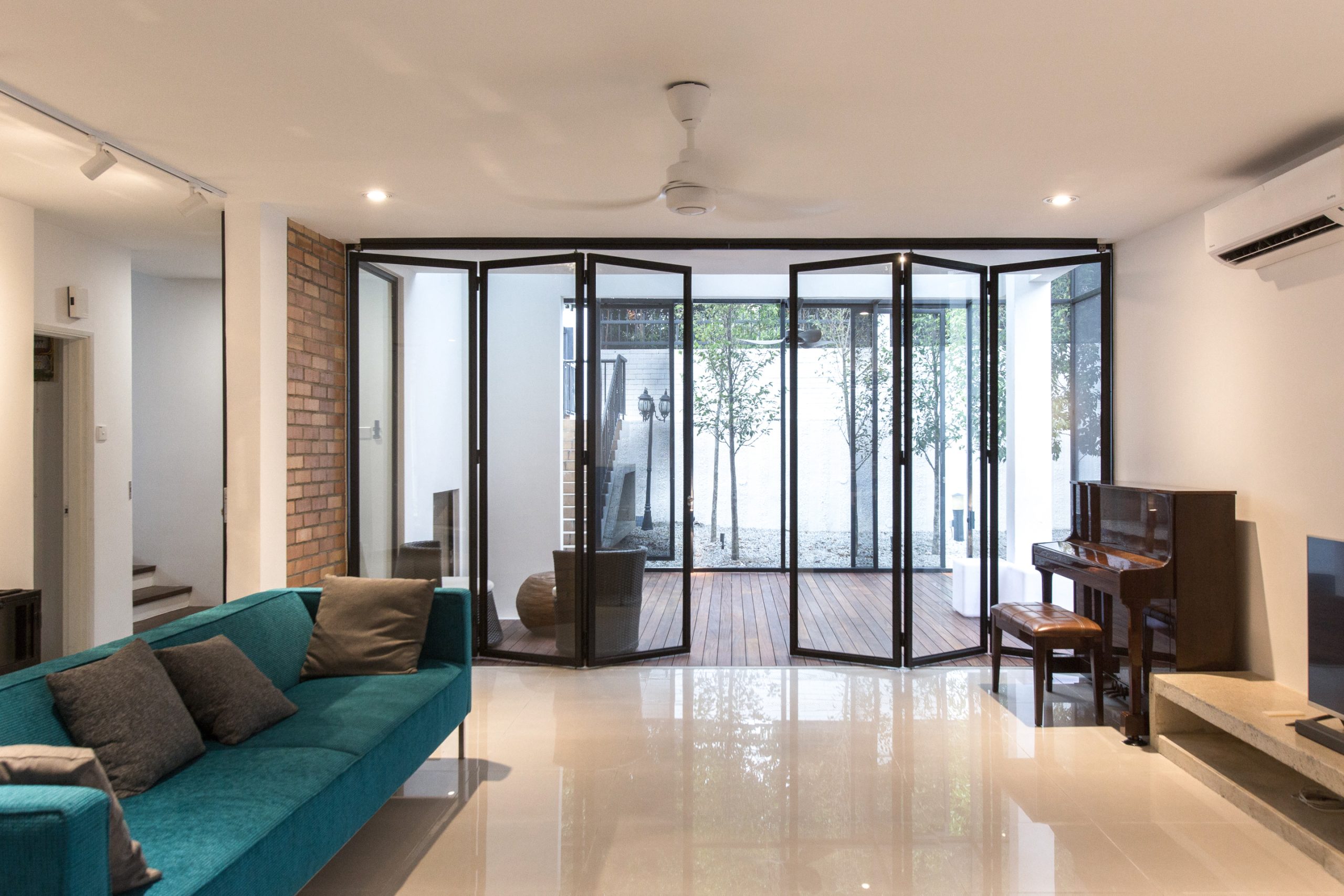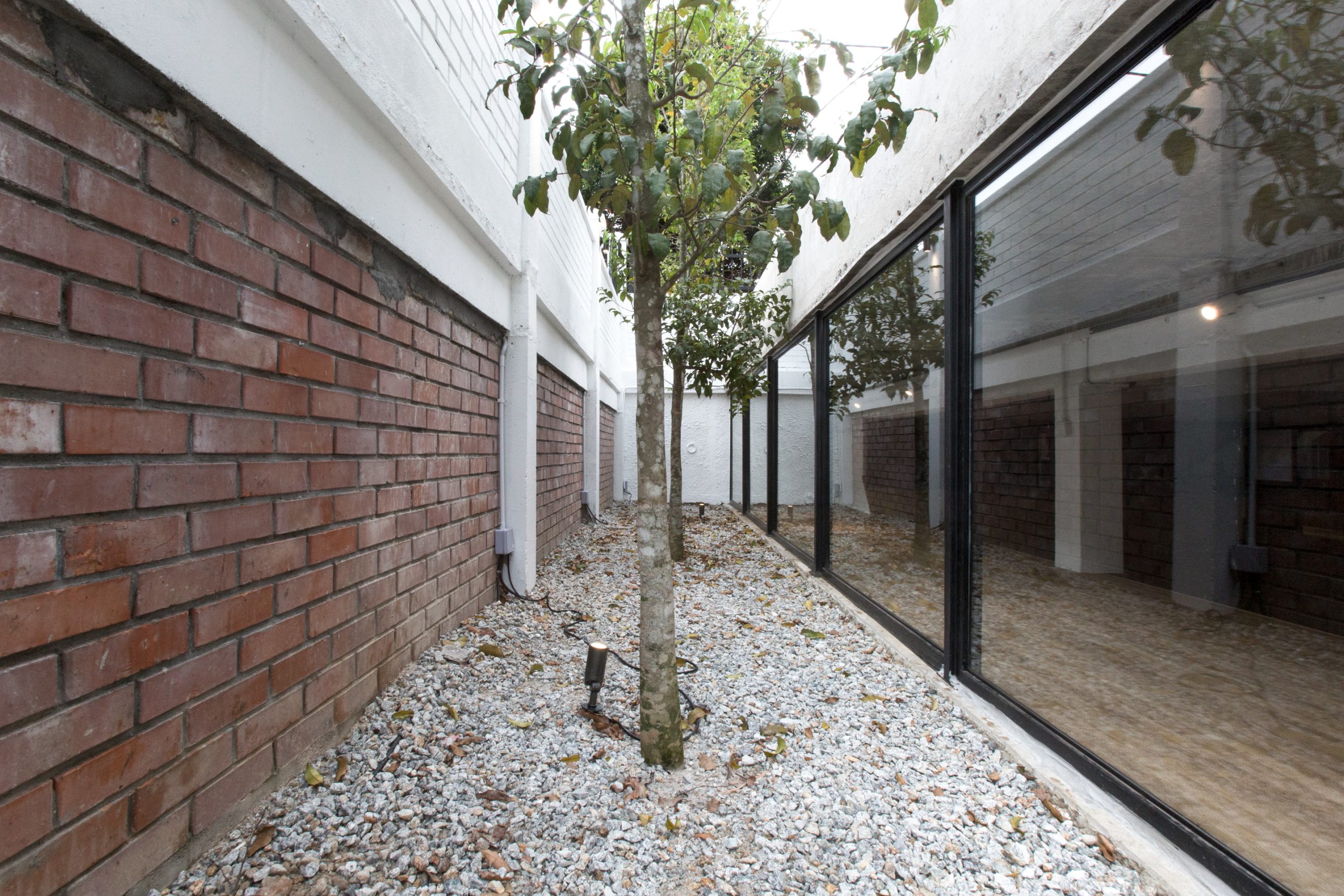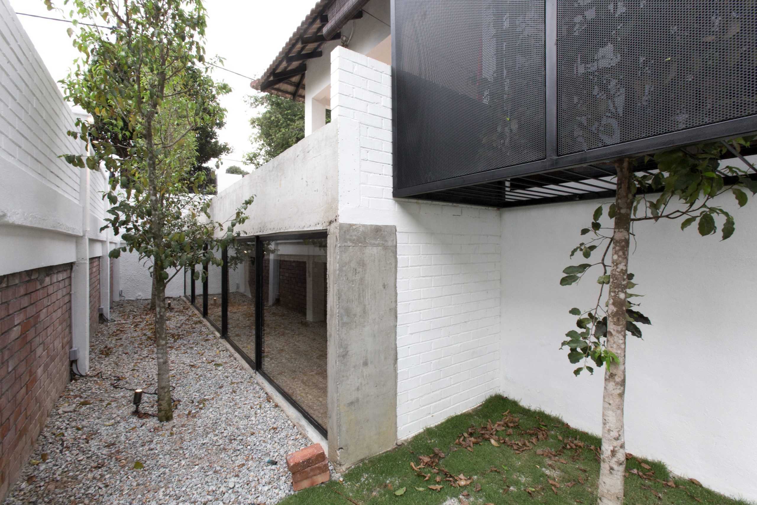 In order to turn the existing basement into a habitable space, partial car porch slab was hacked off to create a new sunken tree garden, allowing lights and bringing life to the basement Studio, turning from a dreadful and humid underground basement into a cool chic healthy work space.