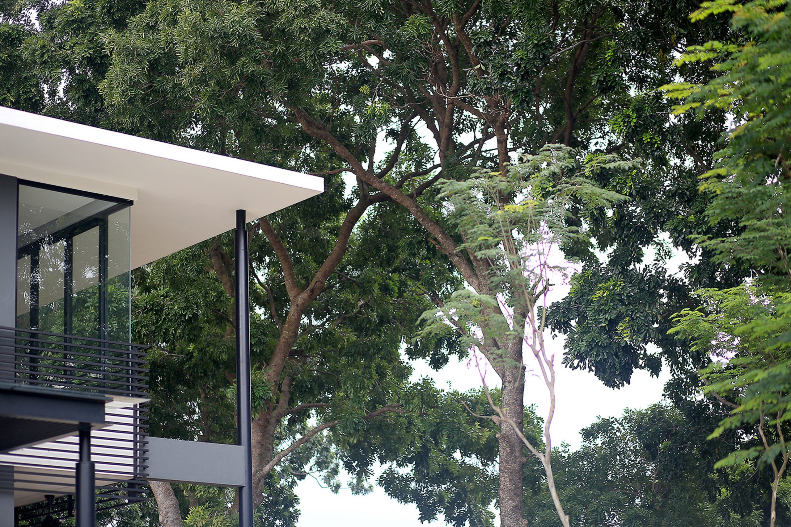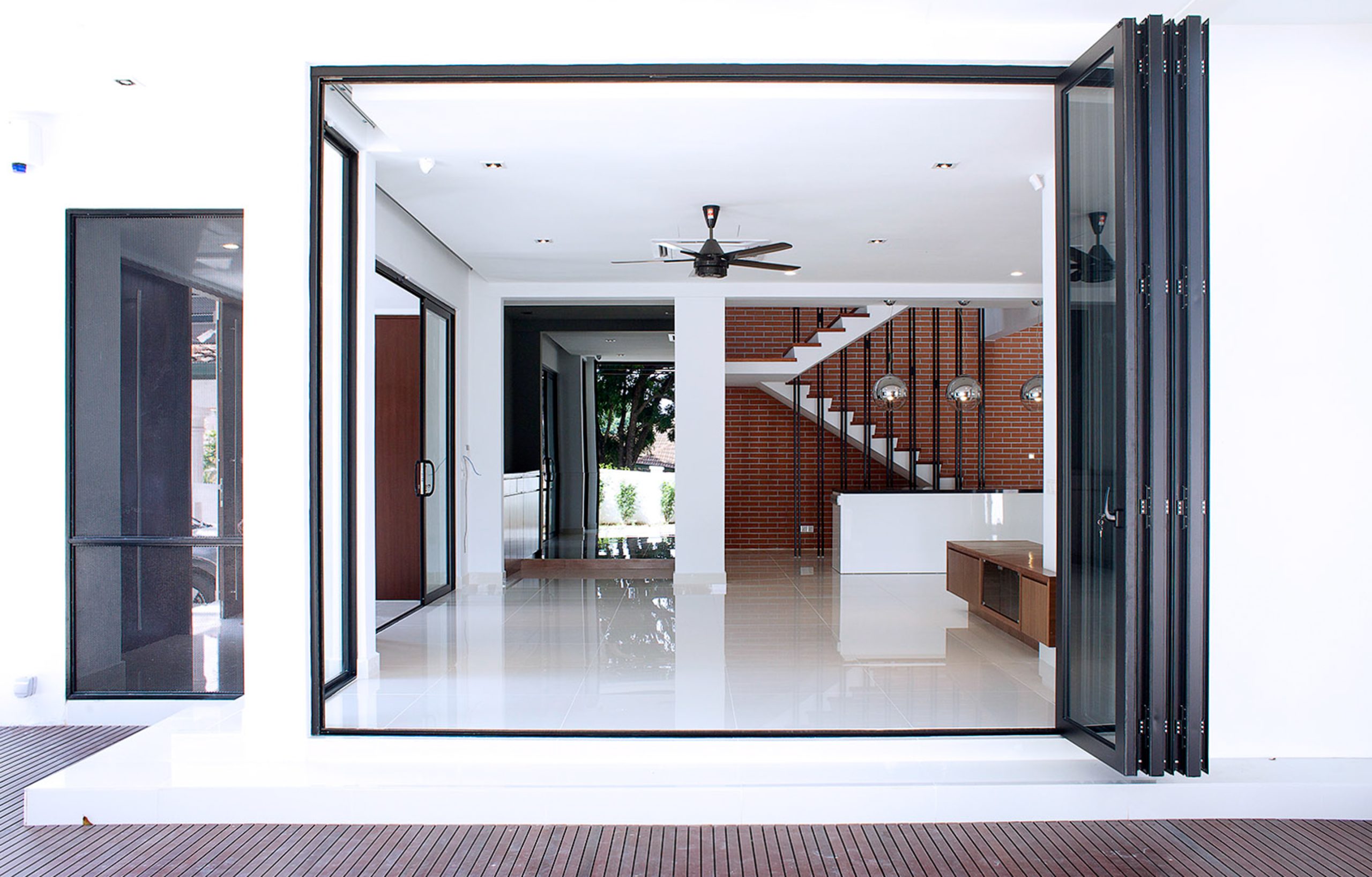 The brief was taken literaly as the fundamental design approach by stripping off all walls on east facade of the original house and replacing with full height glazing doors and windows. This honest approach was further exaggerated by introducing 2 new high level flat roof extensions creating new intermediate or transitional spaces under between the indoor and the outdoor, the Serambi. The newly created double height Serambi space becomes the focus point and core activity area to the whole living.